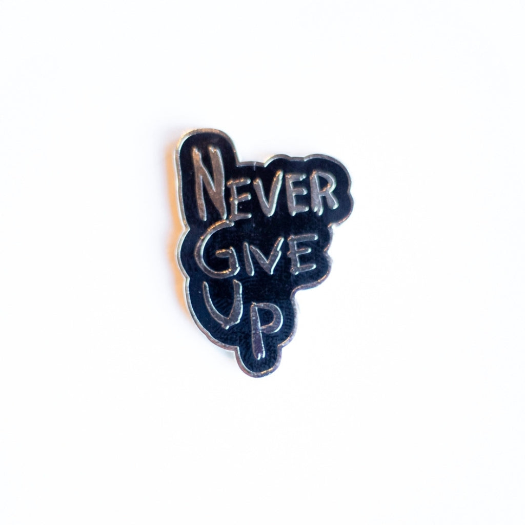Crafted with high-quality enamel and measuring approximately 1"x1", this pin is a versatile and meaningful addition to any outfit, backpack, or accessory collection. Its bold design and inspiring message make it the perfect reminder to persevere through life’s challenges.